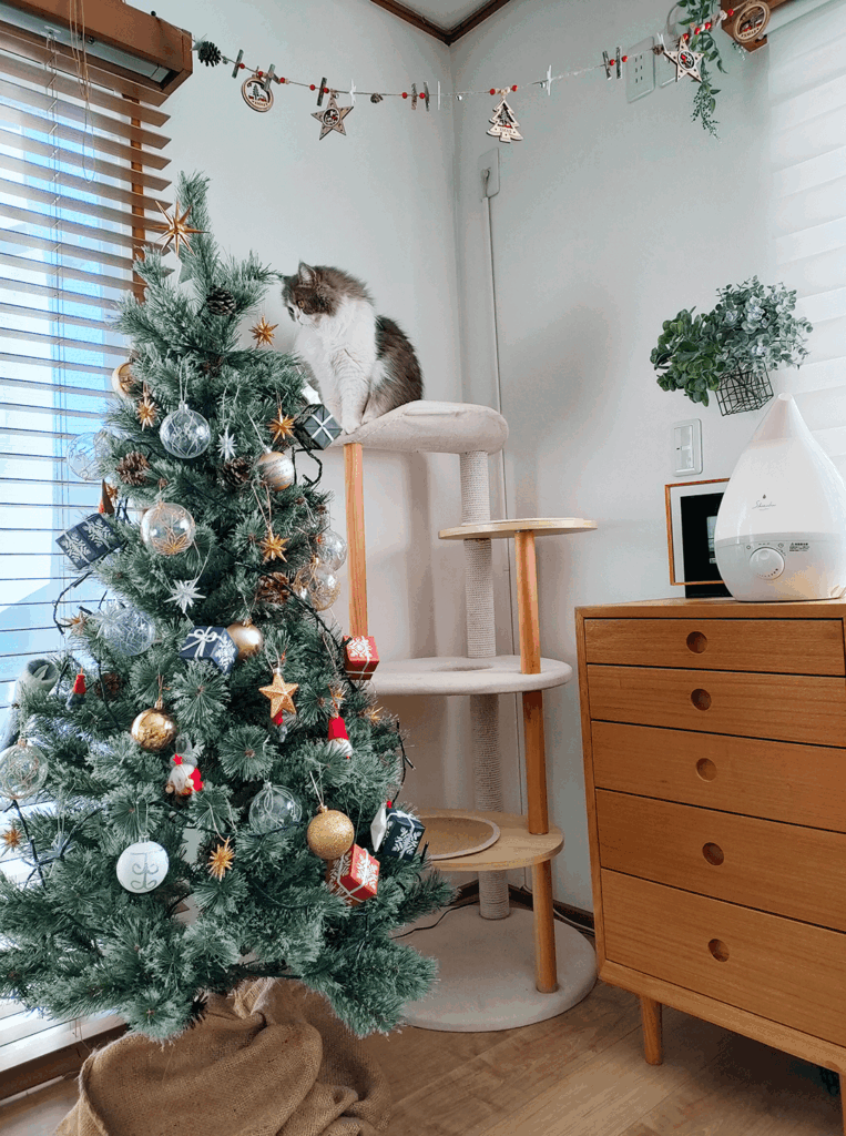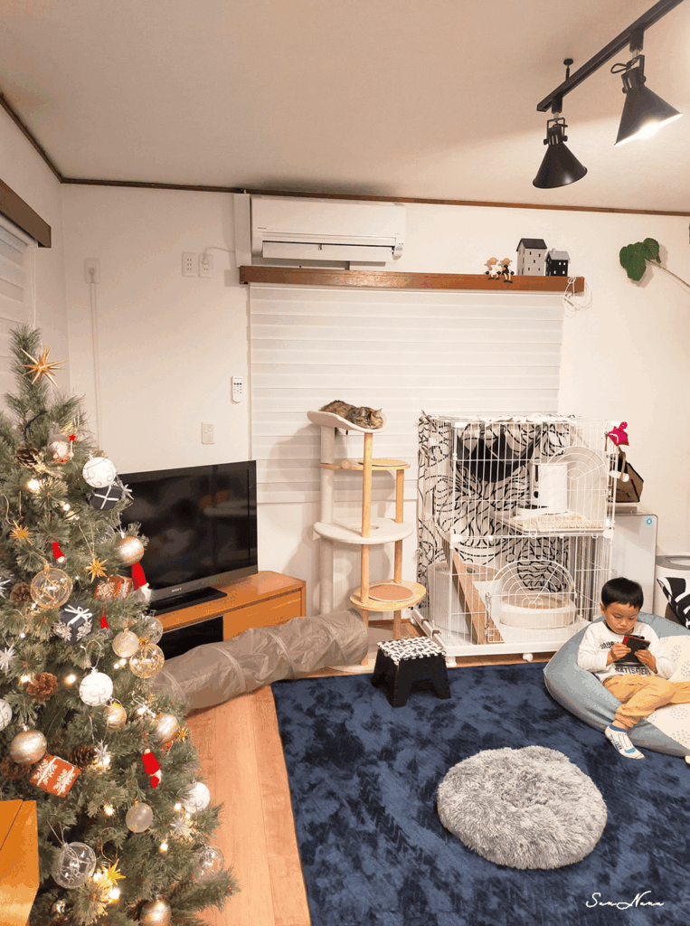 ねこケージを置いてたのでいろいろ移動してツリーの居場所を確保。
