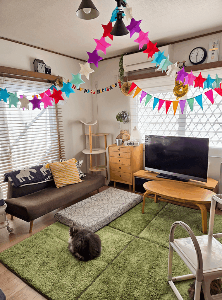 先日、おにいちゃん(9歳)のお誕生日だったので飾り付けしてあります。