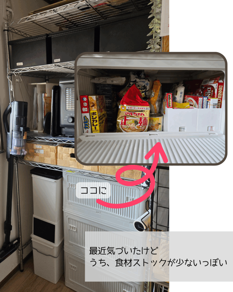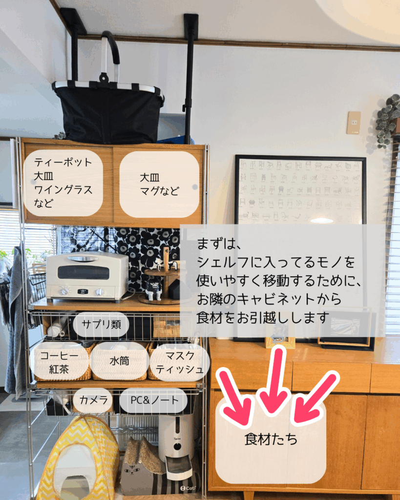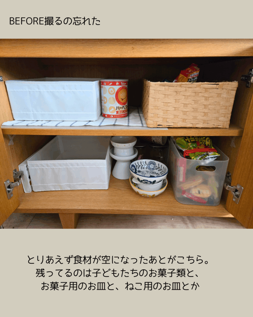 ここには食材が入っていたのですが、それを自作パントリーに移すことにしました。