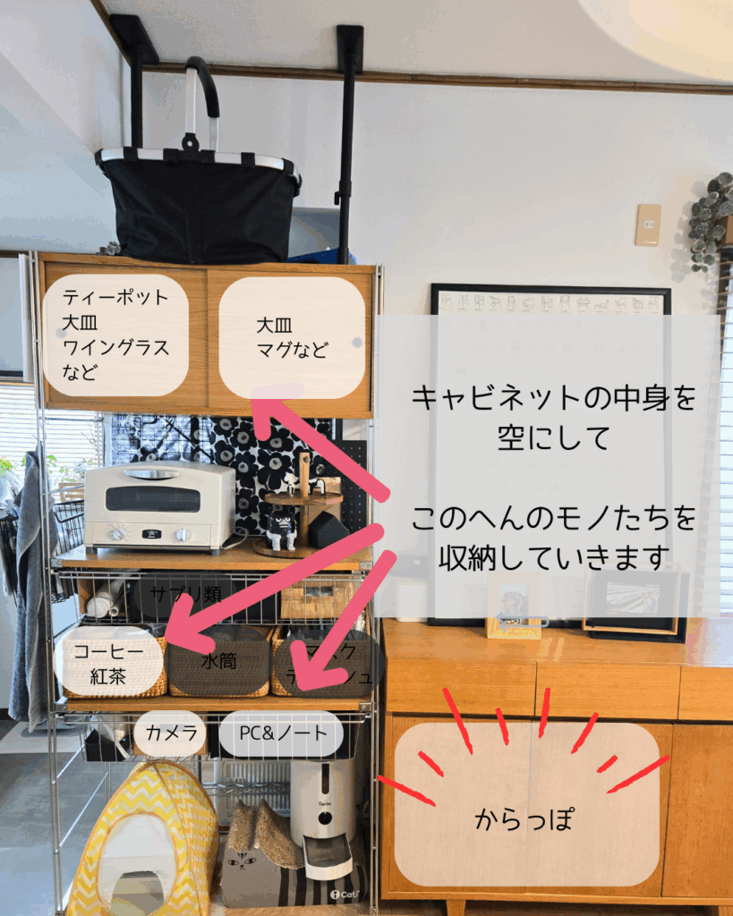 そのほかのモノも移動して、シェルフに入っているモノを収納していきます。
