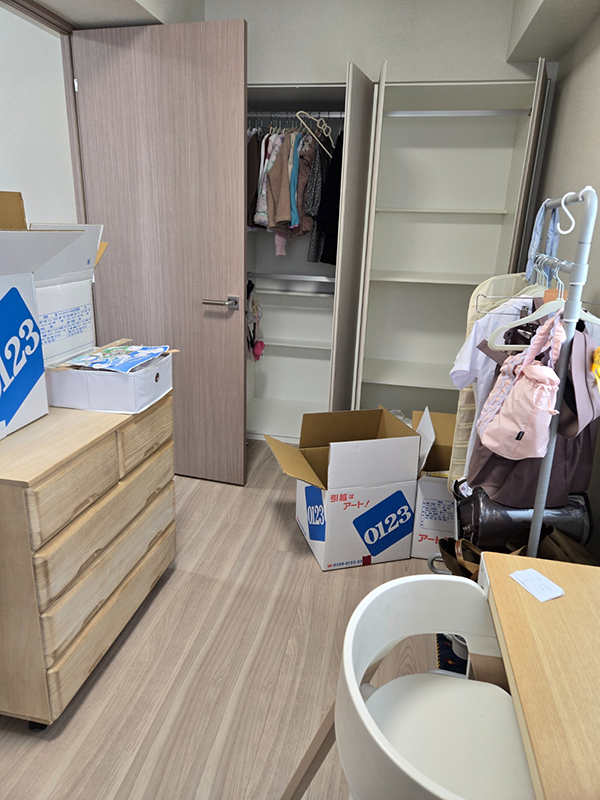 これまでは全部クローゼットのハンガーにかけていたのに、新居にはクローゼットがない!と段ボールのまま困り果ててたお客様。
